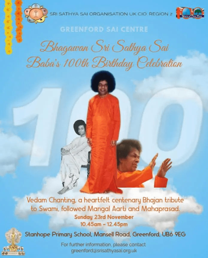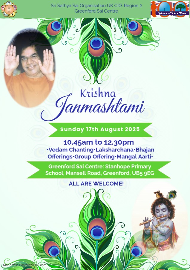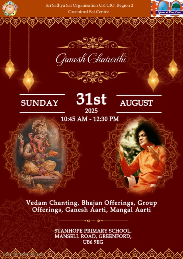 Latest News Sri Sathya Sai Baba’s Centenary Birthday Celebration 2025Sunday 23rd November 2025 Ganesh Chaturthi 2025Sunday 31st August 2025 Krishna Janmashtami 2025Sunday 17th August 2025 Guru Purnima 2025Sunday 13th July 2025